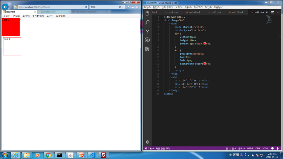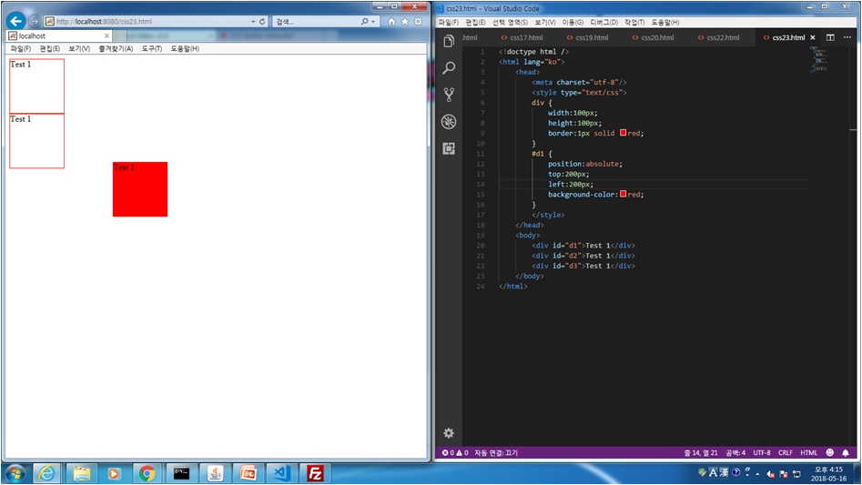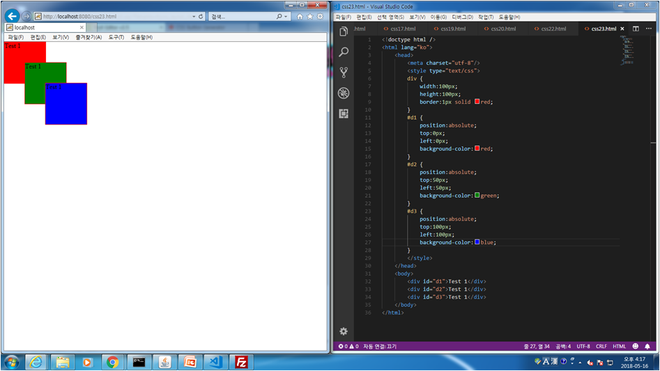 css.23 position:absolute 사용법 및 z-index로 순서 설정 법