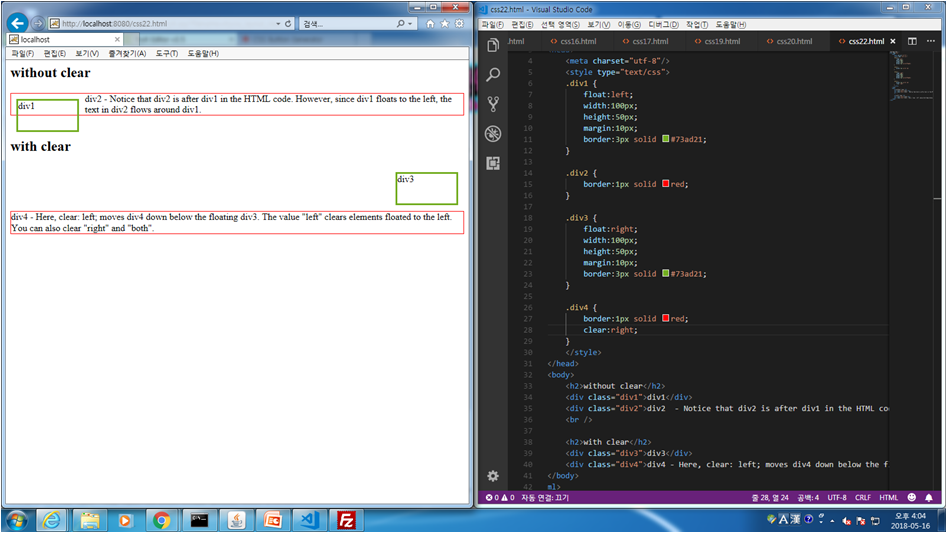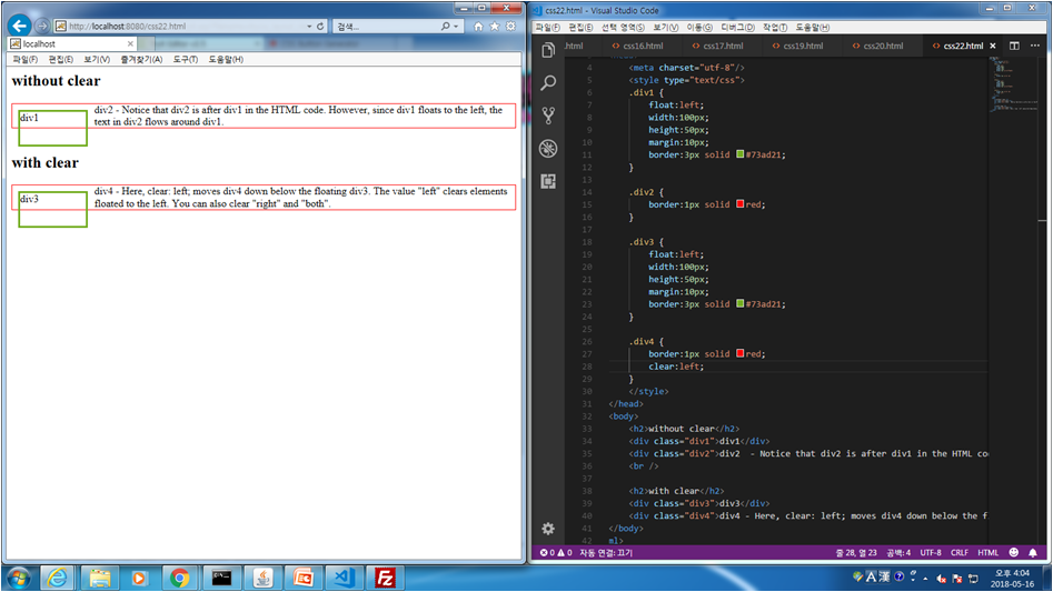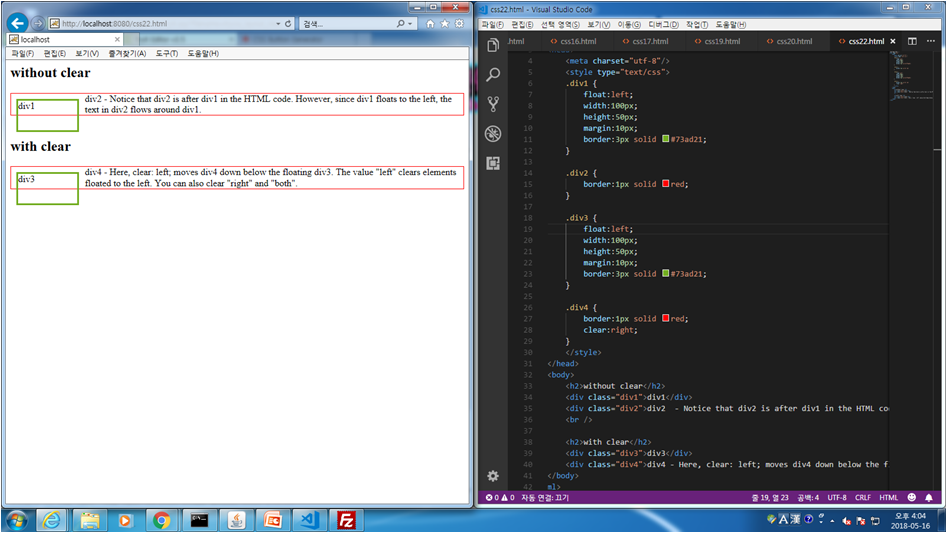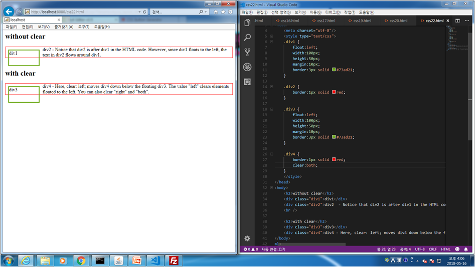 css.22 float 다중사용시 겹치는거 clear를 사용하여 안겹치게 하는 법
