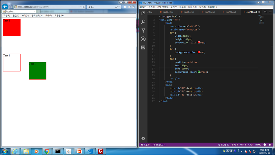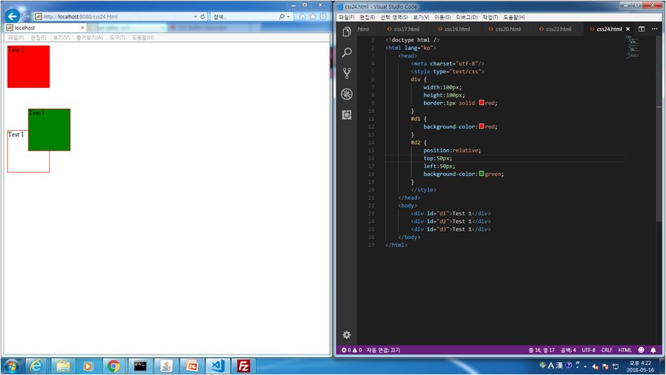 css.24 position:relative를 이용하여 좌표를 설정하여 나타내는법