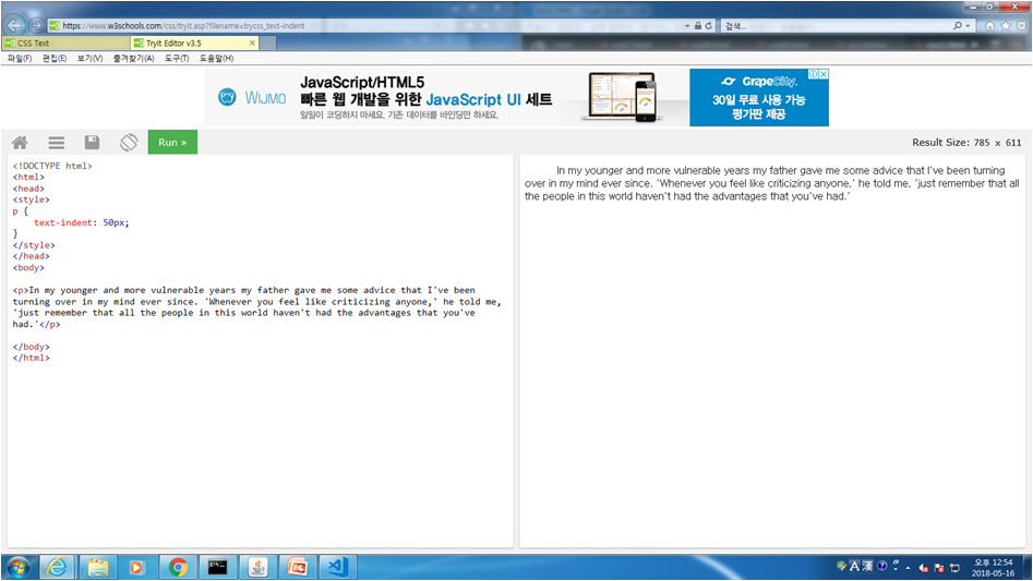 스타일 해제시 위 핑크나 블랙이나 해제하면 위와 같이 텍스트로만 이루어진 개발창이 뜬다.