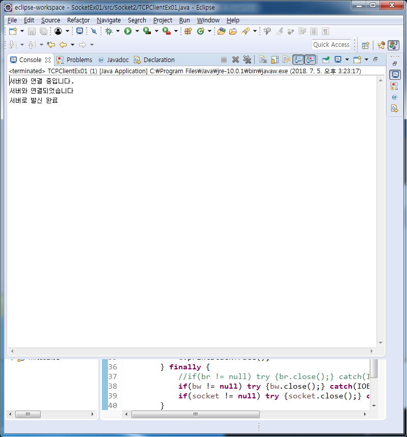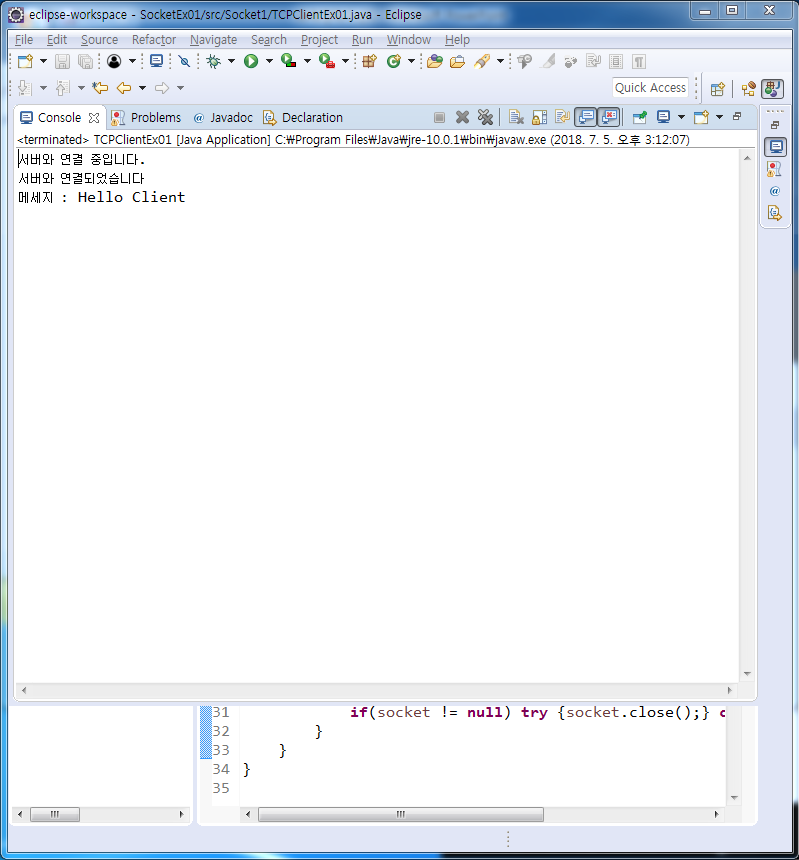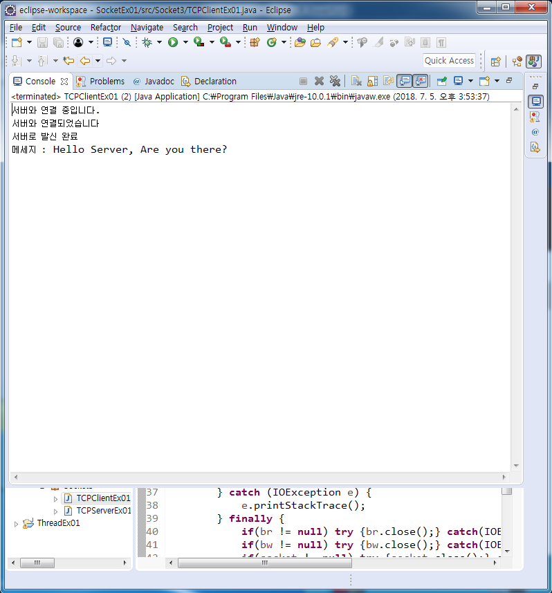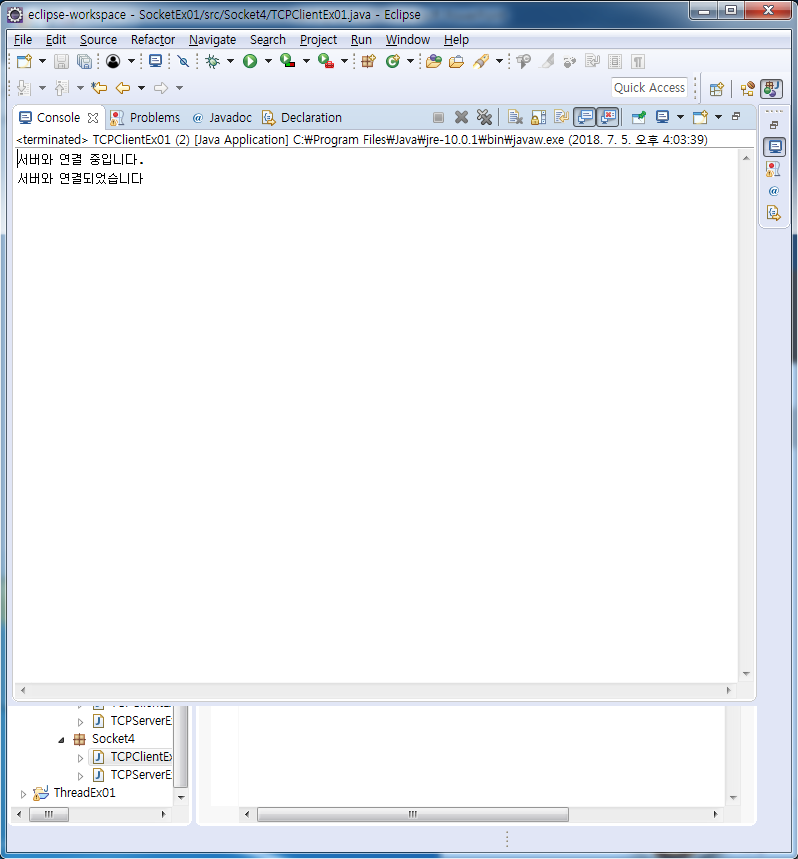 TCPClientEx01 - 서버로 부터 데이터 수신