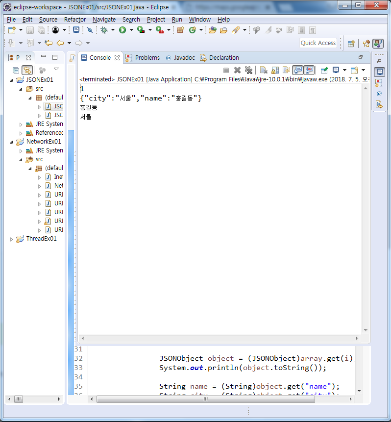 //String json = "[{ \"name\" : \"홍길동\", \"city\" : \"서울\"}]";