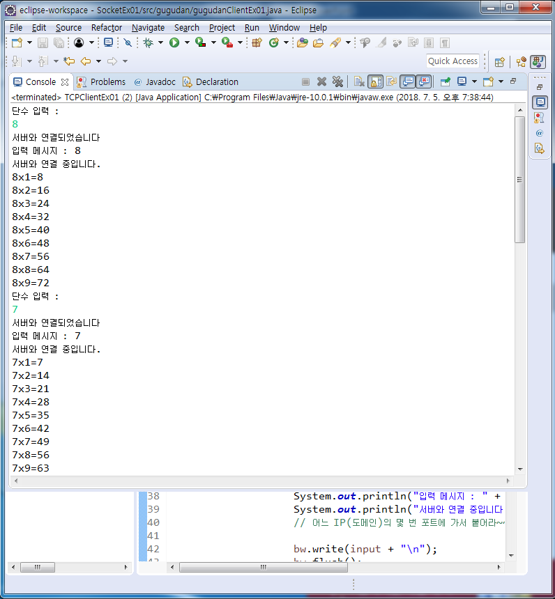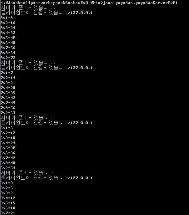 클라이언트가 7단을 보내면 서버에서 7 x 1 = 7 ... 7 x 9 = 63을 클라이언트로 보내고
