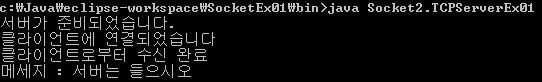 Socket3.TCPServerEx01 - 클라이언트로부터 받은 데이터를 다시 클라이언트에 보내기 (echo server)