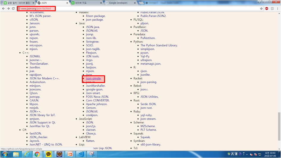 JSONArray array = (JSONArray)parser.parse(json); 으로 배열을 파싱시키고