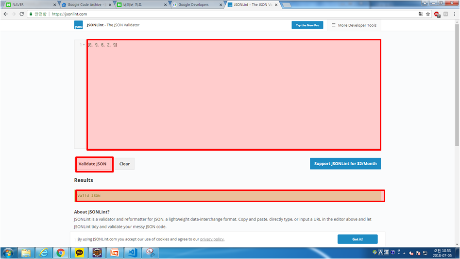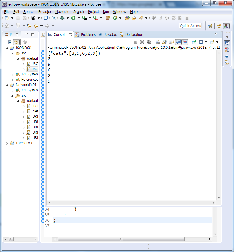 String json = "{ \"data\" : [8, 9, 6, 2, 9]}";와 같은 데이터가 있다