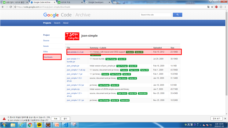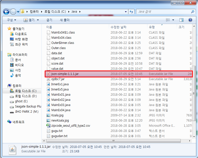 JSONObject object = (JSONObject)parser.parse(json); 객체 파싱 구문을 수행하고