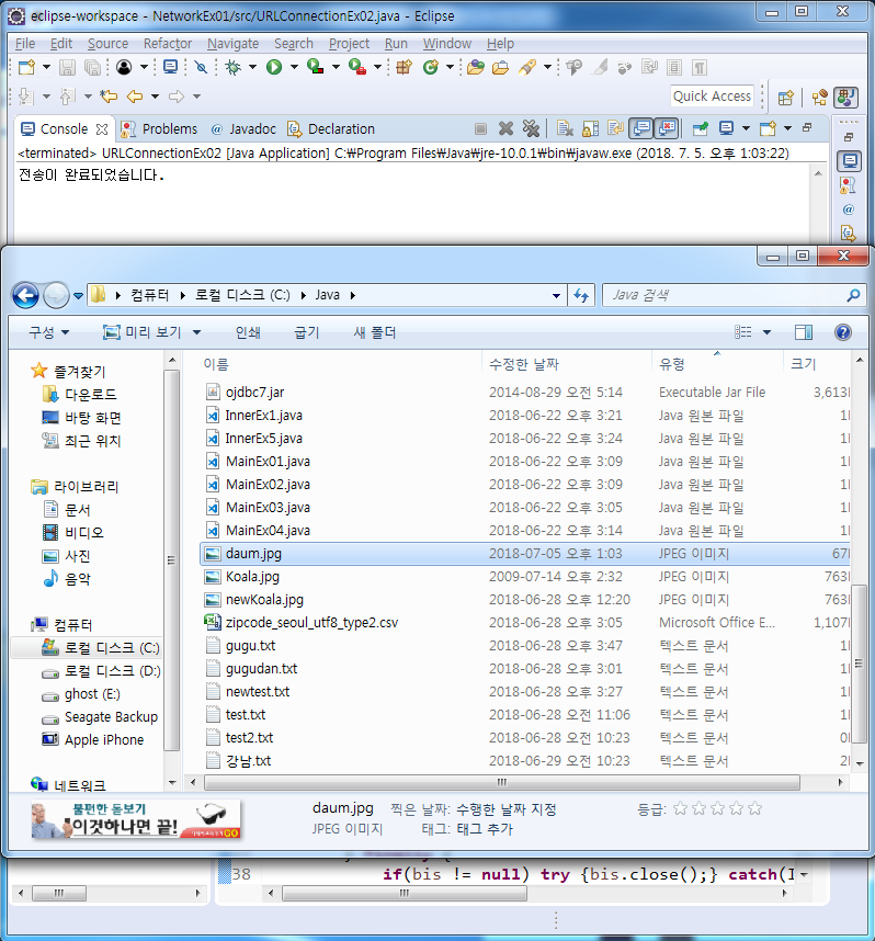 TCPClientEx01 - 한글 받는 법 "utf-8"을 추가한다