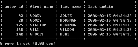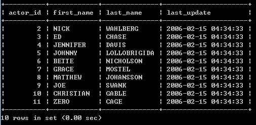 mysql> select * from actor order by first_name desc limit 1, 5;