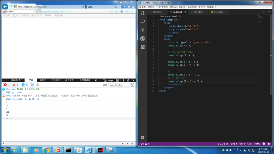 js.11 문자열 연결 연산자, 우선순위 지정법