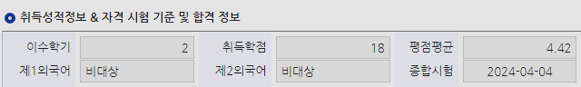 1~2학기 총 18학점을 들어놨기 때문에 이제 남은 2학기는 1과목씩만 들으면 졸업학점인 24학점을 맞출 수 있게 됩니다.