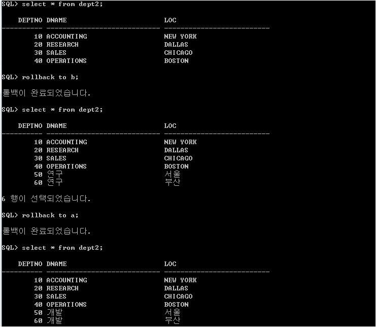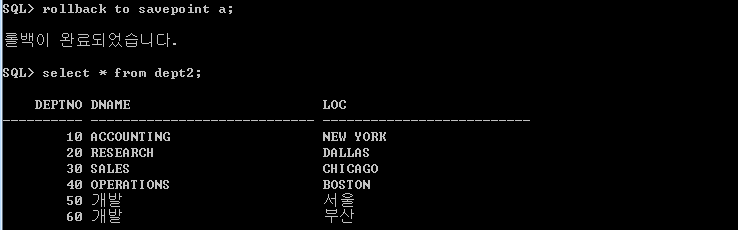 rollback; (부분) - 부분 rollback이 가능하다. savepoint