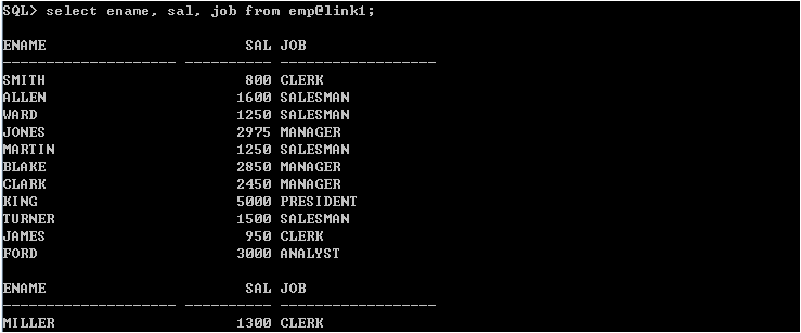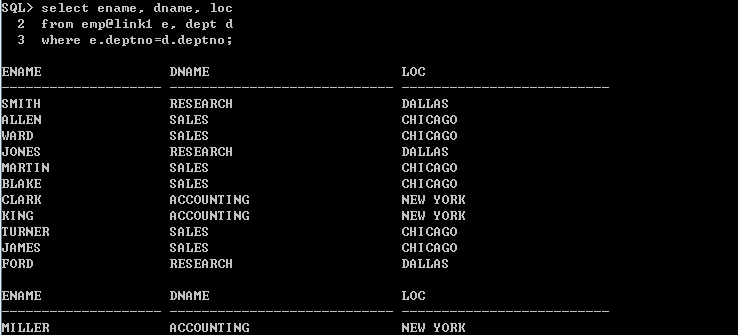 원격(Remote)와 로컬과 join 가능 - 데이터 백업시 사용 emp@link1 e(원격) 와 dept d(로컬)