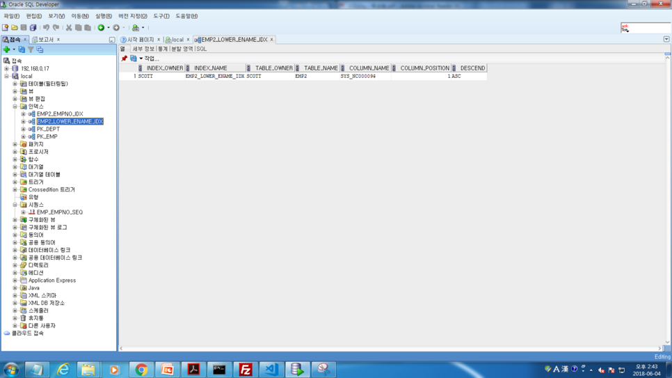 3. 사원 테이블의 사원명 컬럼과 업무 컬럼에 결합 인덱스를 작성하시오