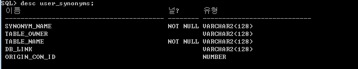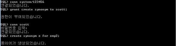 4. 부서 테이블에 대한 동의어 D를 생성하시오
