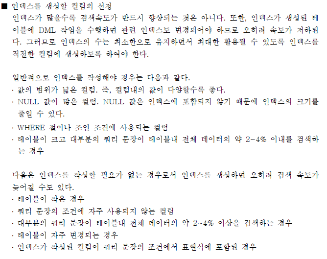 실무에서 작업을 할 때 select * from 테이블(X) - 데이터가 백만개가 될수 도 있기 때문에
