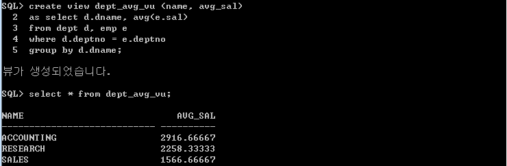 ( ) 절을 view로 설정하여 위와 같이 작성하여 확인 가능하다