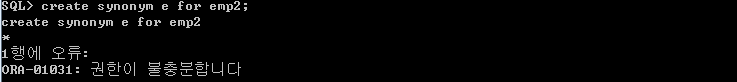 5. 사원 테이블에 대한 공용 동의어 E를 생성하시오