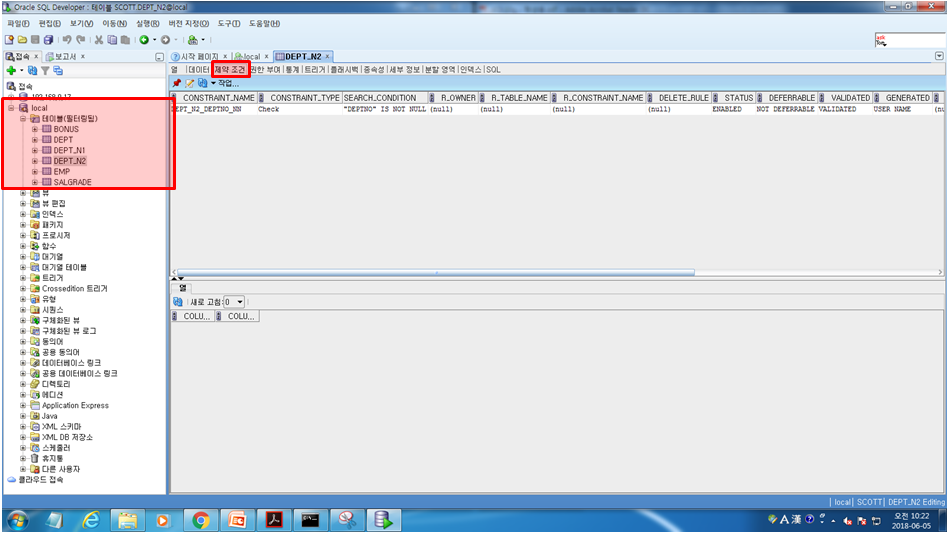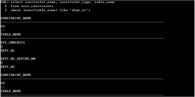 dept_n1을 sys_c0010315로 서버가 임의로 제약조건의 이름을 정의해버렸다