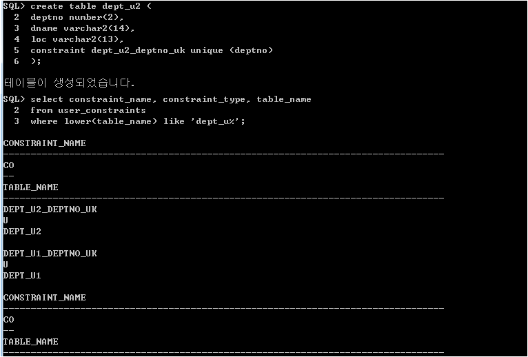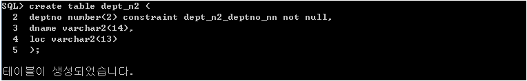 제약조건 dept_n2_deptno_nn 이름 지정