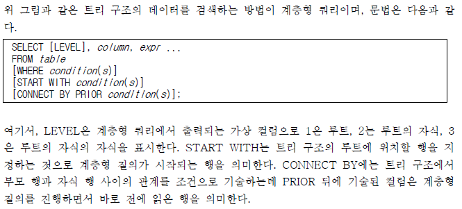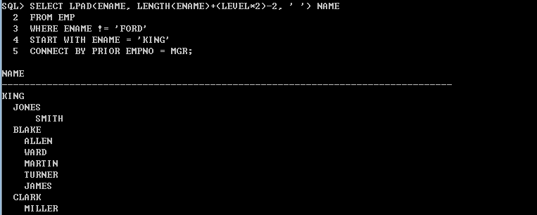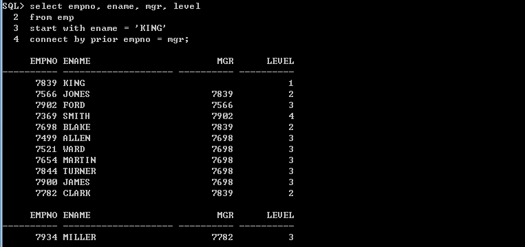 ex) 사원 테이블에서 사원명이 'KING'인 직원부터 하향식 전개하는 방법은 다음과 같다.