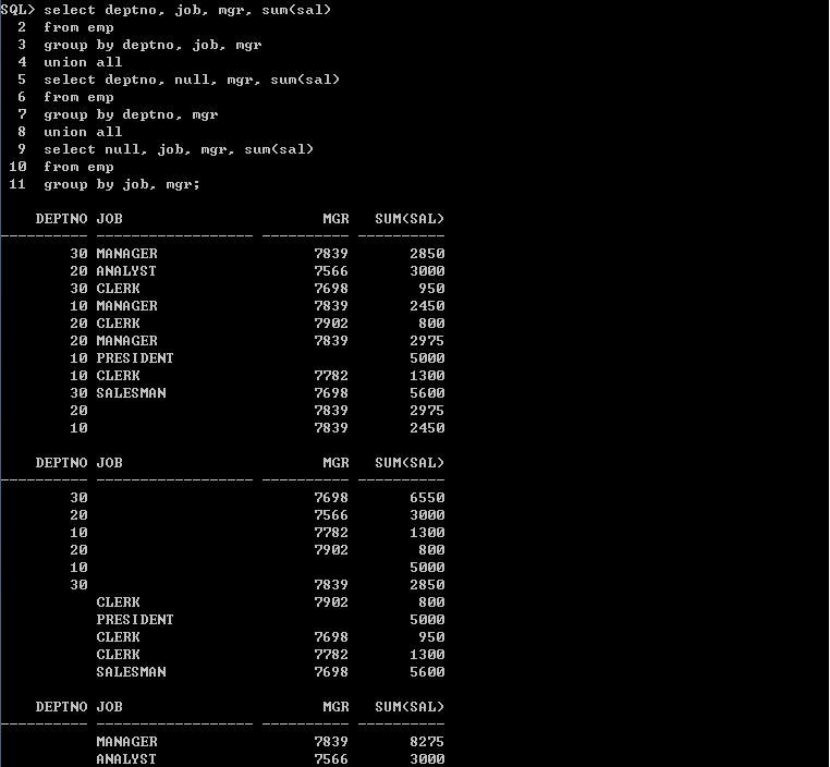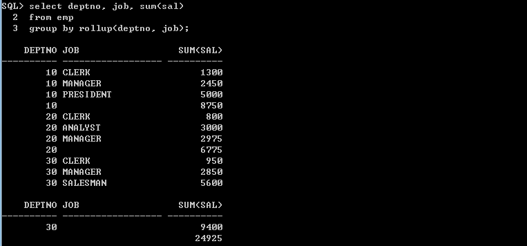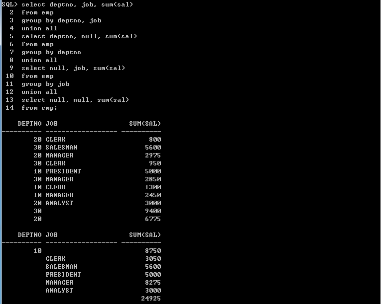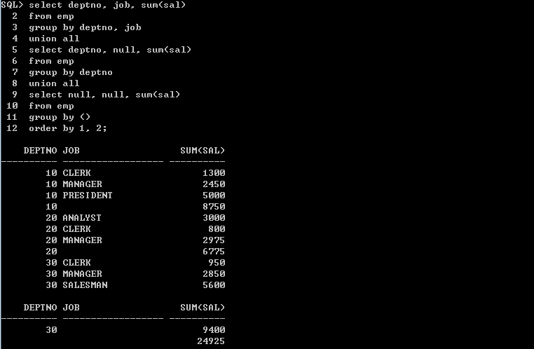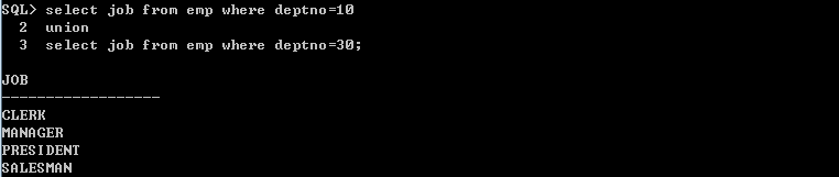 ex) 10번 부서와 30 부서의 직책을 중복없이 출력 => Union