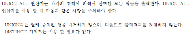 c. 각각의 쿼리에서 컬럼명은 일치해야 한다.