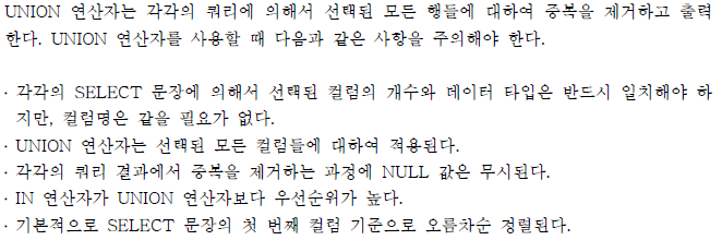 b. 각각의 쿼리에서 컬럼의 데이터 타입은 일치해야 한다.