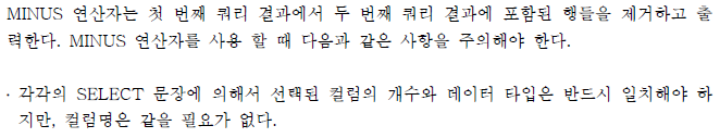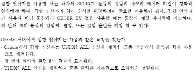 3. 집합 연산자를 사용 할 때 주의해야 할 사항이 아닌 것은? c
