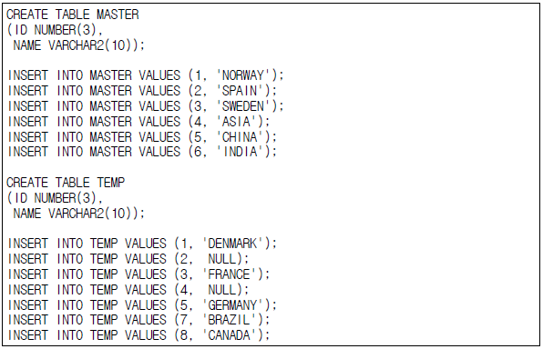 [4-6] 다음과 같은 Master 테이블과 Temp 테이블을 작성하시오