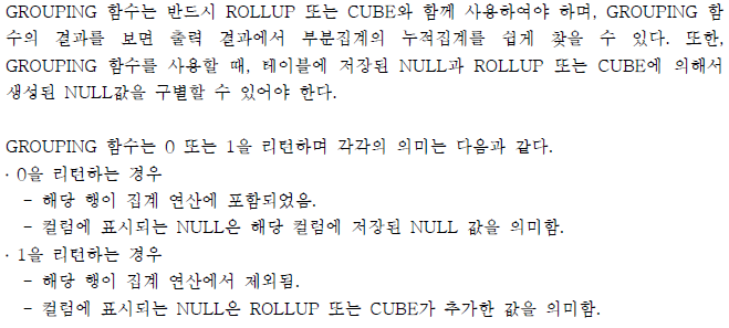 Grouping 함수 - 어떤 컬럼이 그룹화 되었나 확인할 때 사용