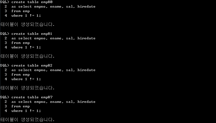 ex) empno, ename, sal, hiredate를 가진