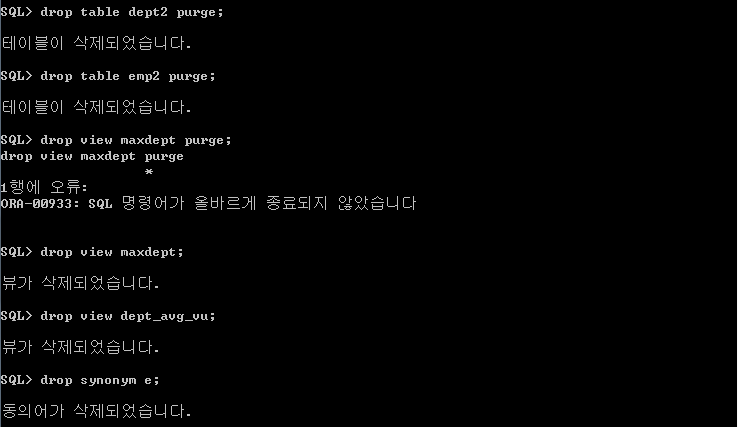필요없는 테이블, 뷰, Synonym을 지워준다