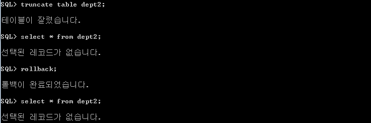 truncate는 rollback이 안됨!!