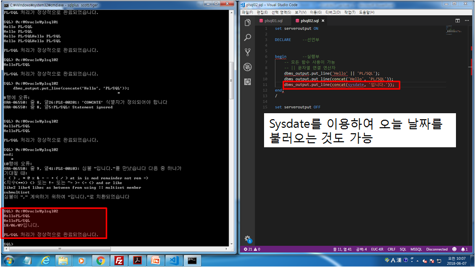 dbms_output.put_line(concat(sysdate, '입니다.'));