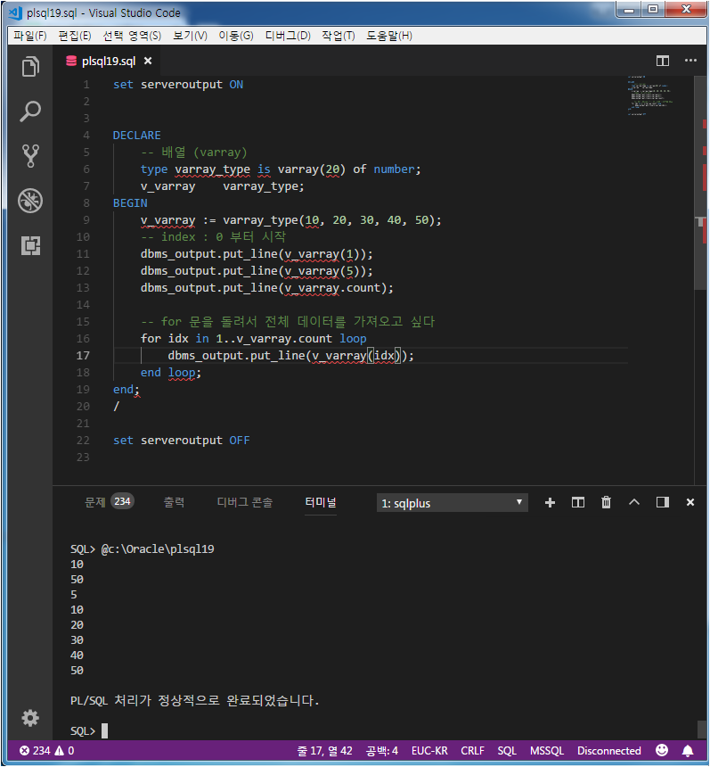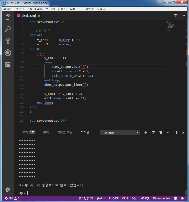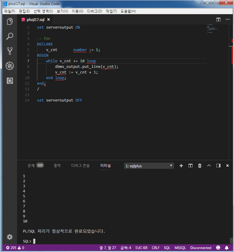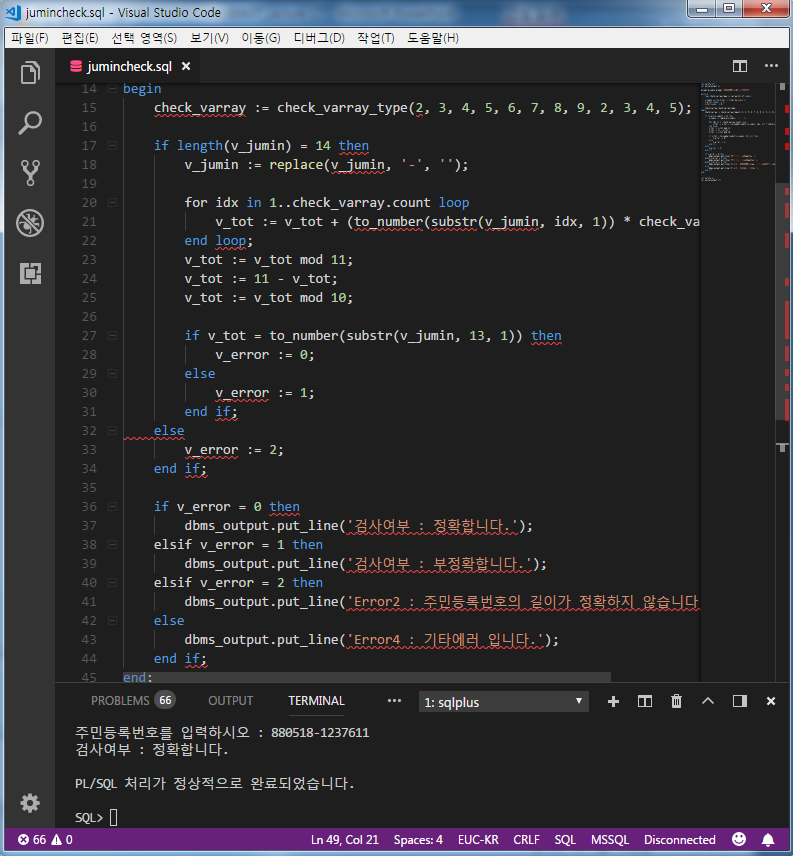 dbms_output.put_line('검사여부 : 정확합니다.');