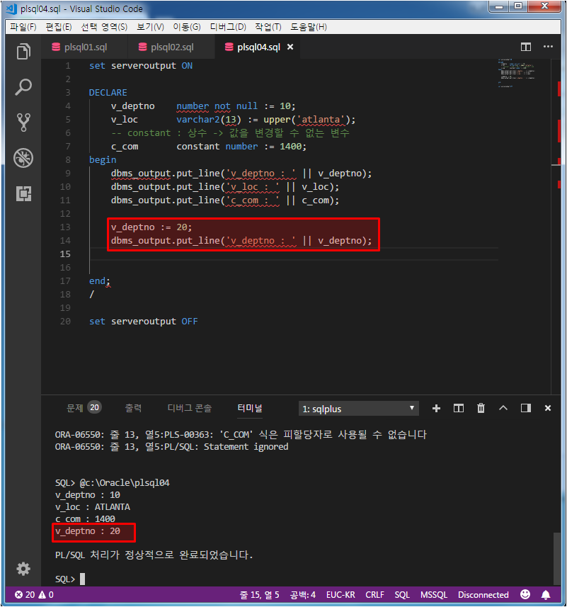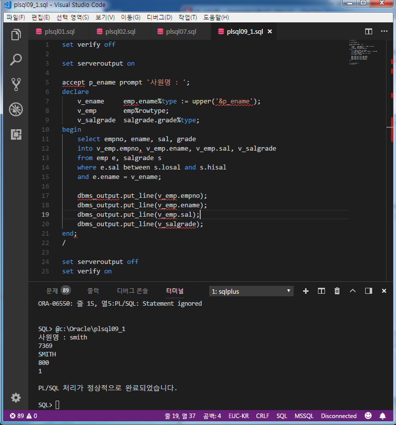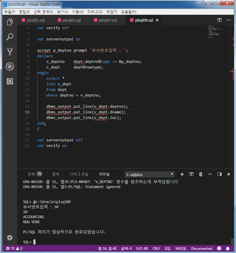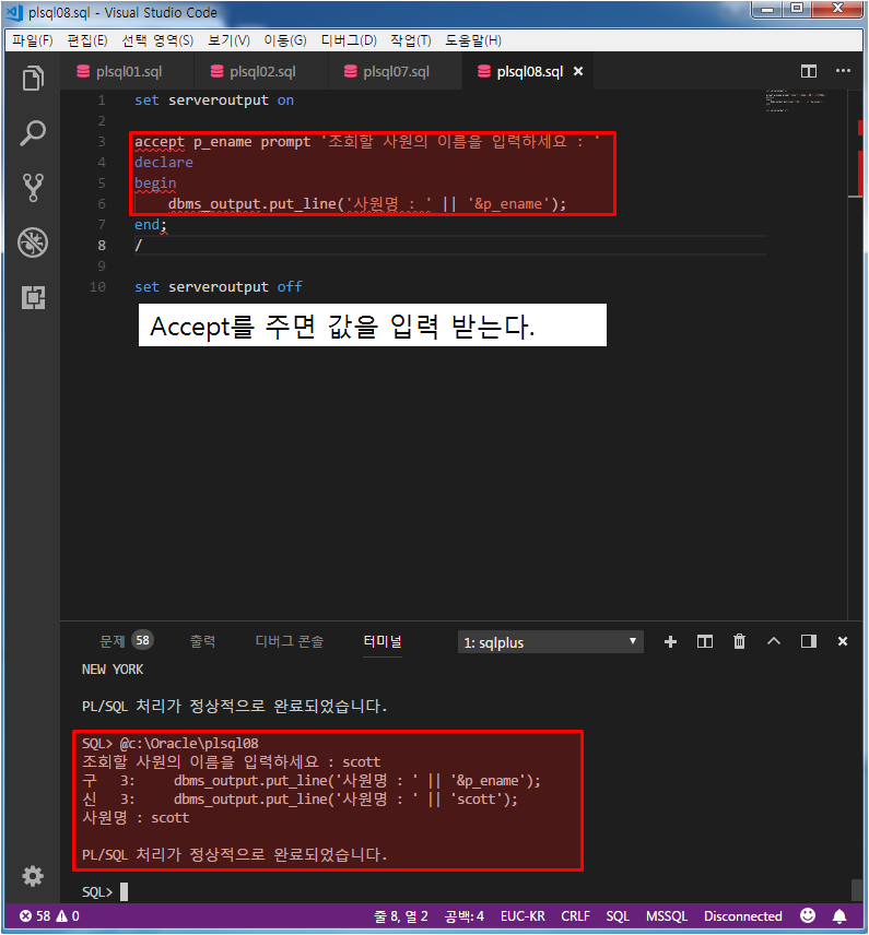 plsql 09 외부에서 입력받은 데이터 정보를 이용하여 출력하기