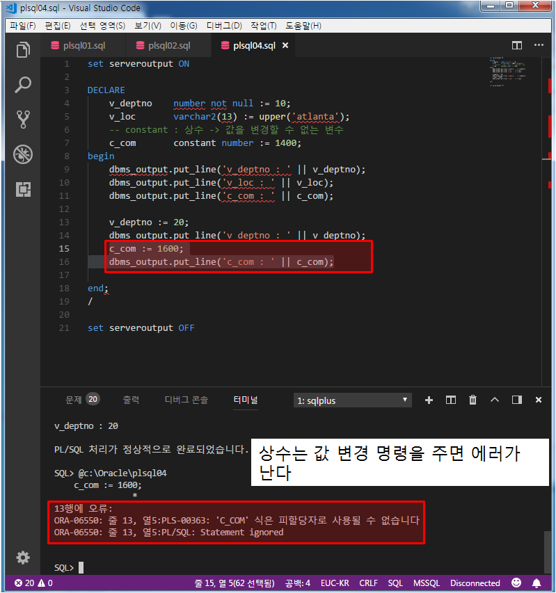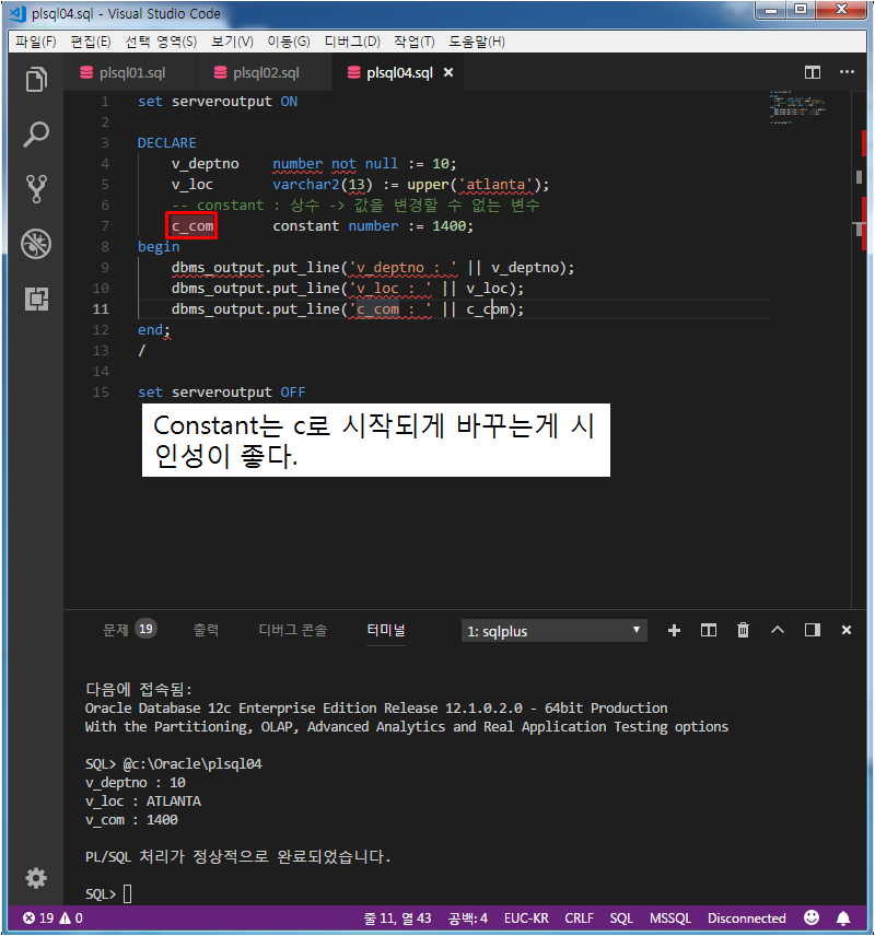 -- constant : 상수 -> 값을 변경할 수 없는 변수