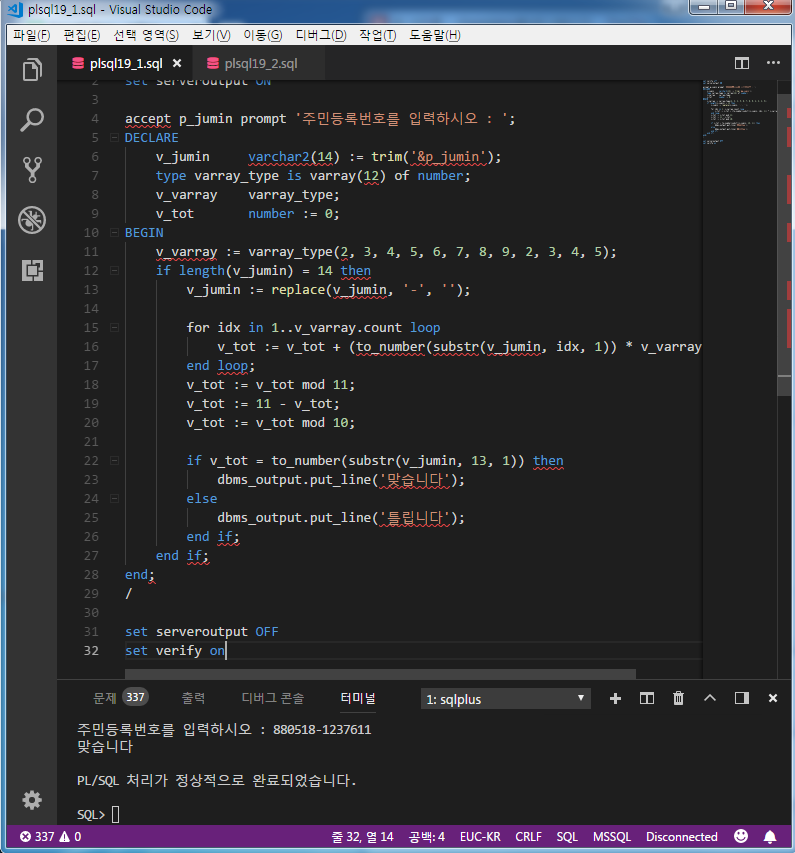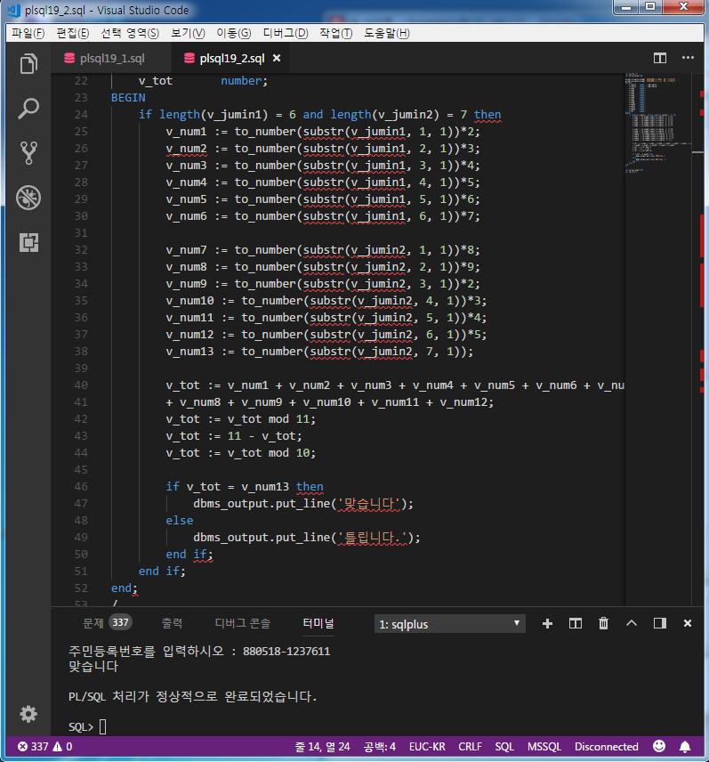 if v_tot = to_number(substr(v_jumin, 13, 1)) then