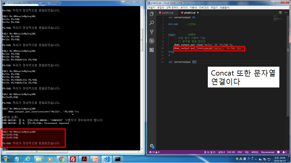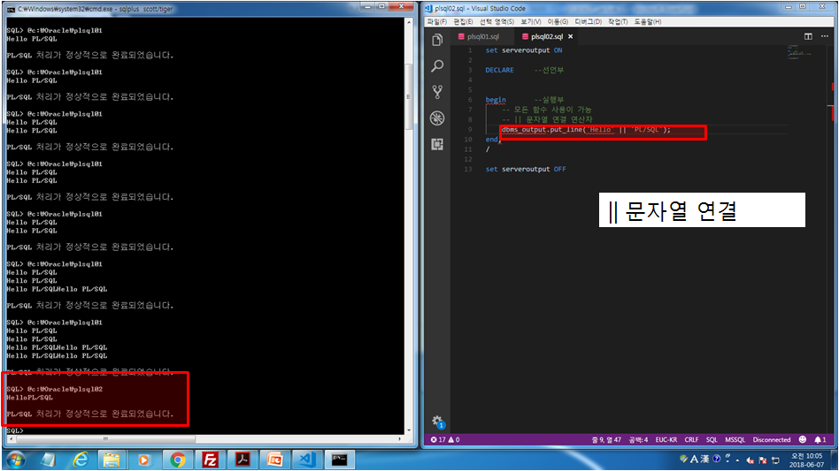 dbms_output.put_line('Hello' || 'PL/SQL');