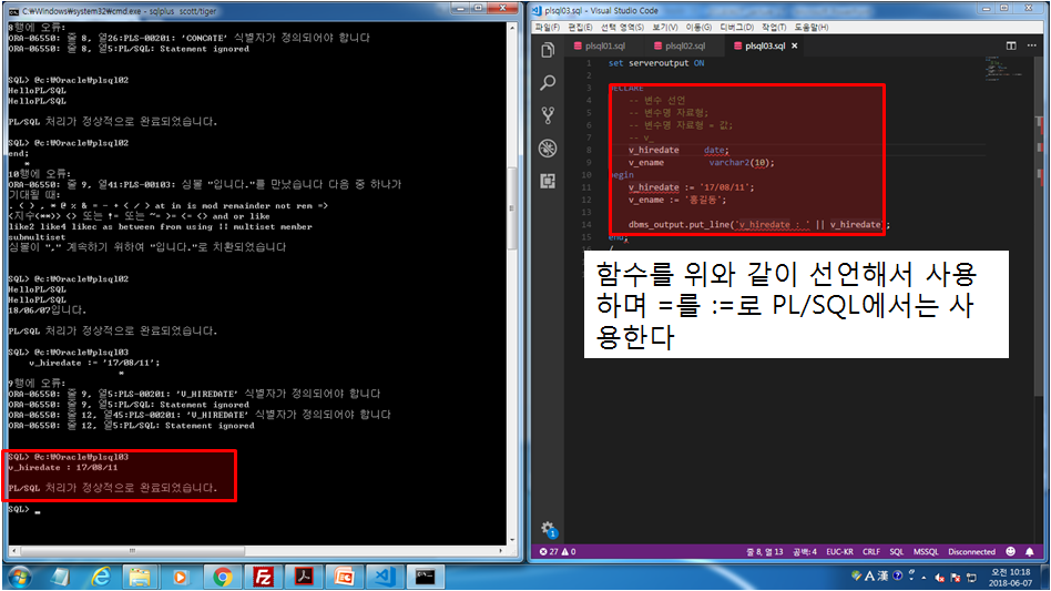dbms_output.put_line('v_hiredate : ' || v_hiredate);