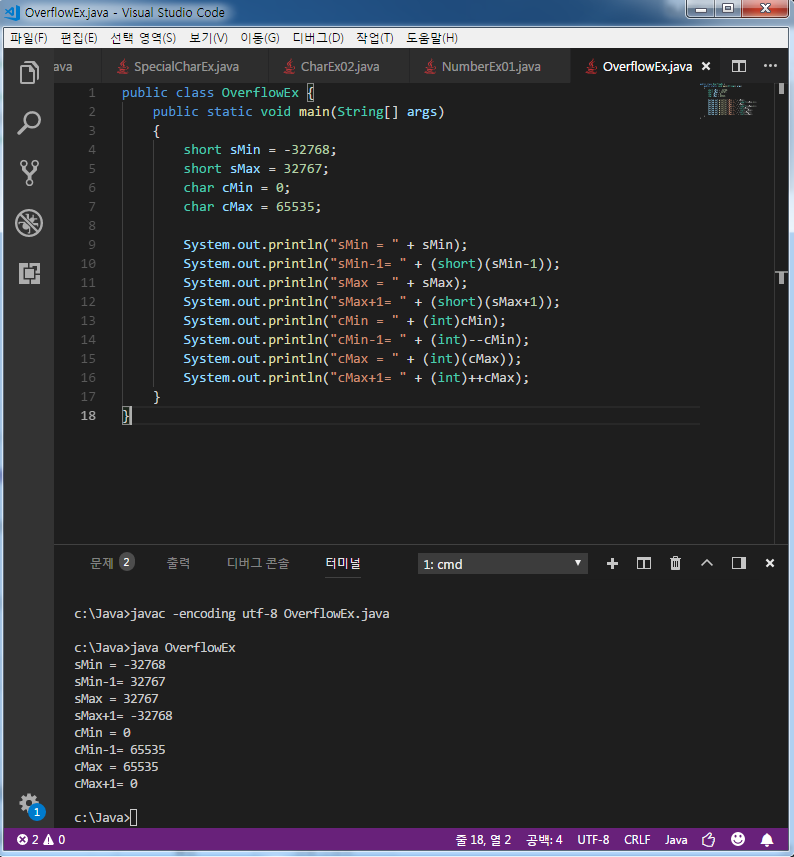 System.out.println("sMin-1= " + (short)(sMin-1));