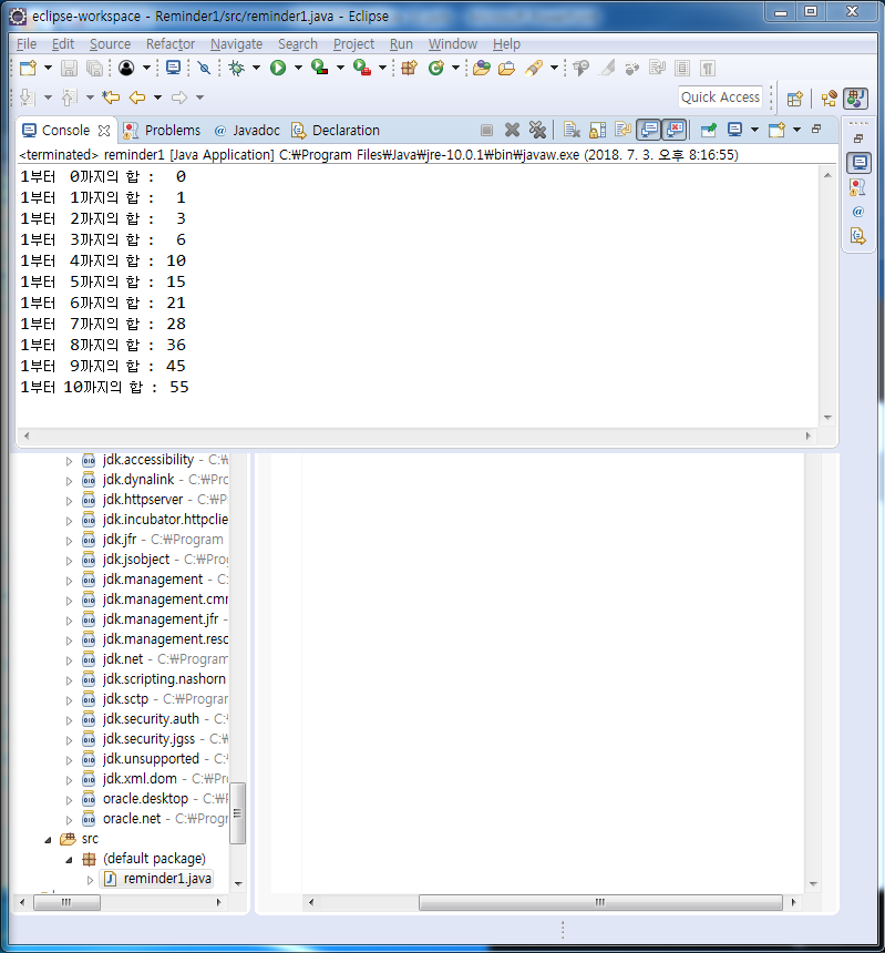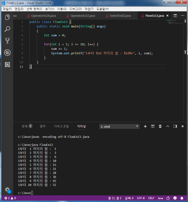 System.out.printf("1부터 %2d 까지의 합 : %2d%n", i, sum);