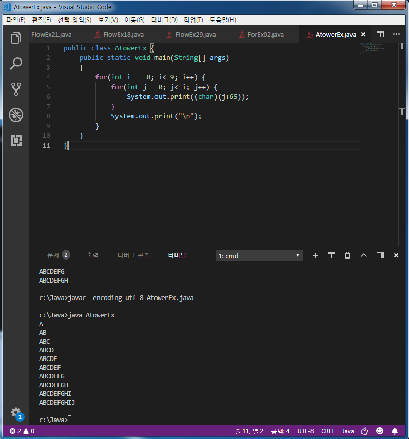 AtowerEx : 순차적으로 A부터 J까지 하나씩 증가하며 내려가는 프로그램 생성