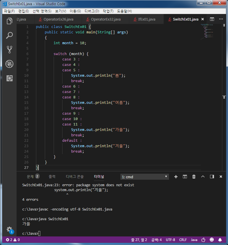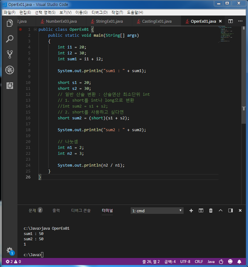 | Lecture 24 - Java(5) 생성자, 변수의 초기화, 상속, 인스턴스, 패키지, import, 클래스 (0) | 2019.04.19 |