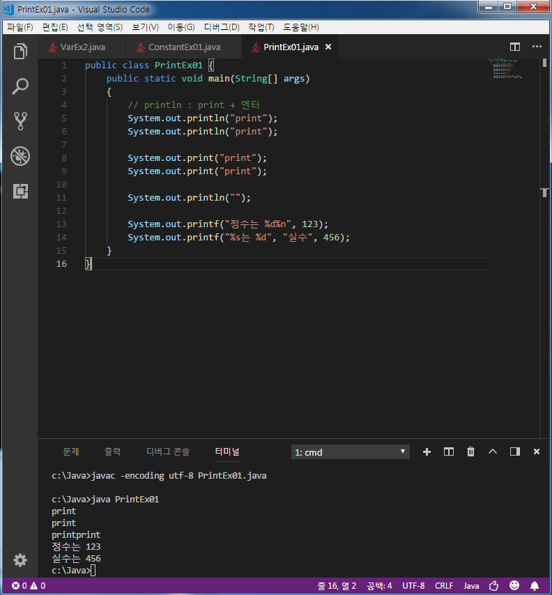 printf는 %d등 지시자가 들어가 있는 것들을 출력할때 사용한다.