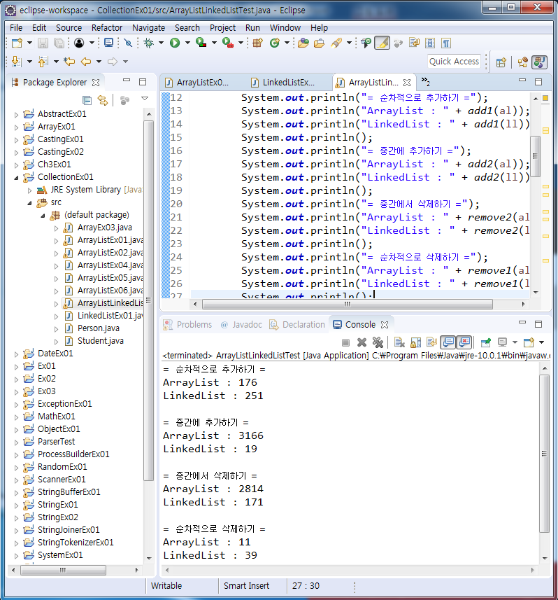 - 차례대로 데이터를 추가하고 마지막에서부터 데이터를 삭제하는 것은 빠르지만, 배열의 중간에 데이터를 추가하려면, 빈자리를 만들기 위해 다른 데이터들을 복사해서 이동해야 한다.