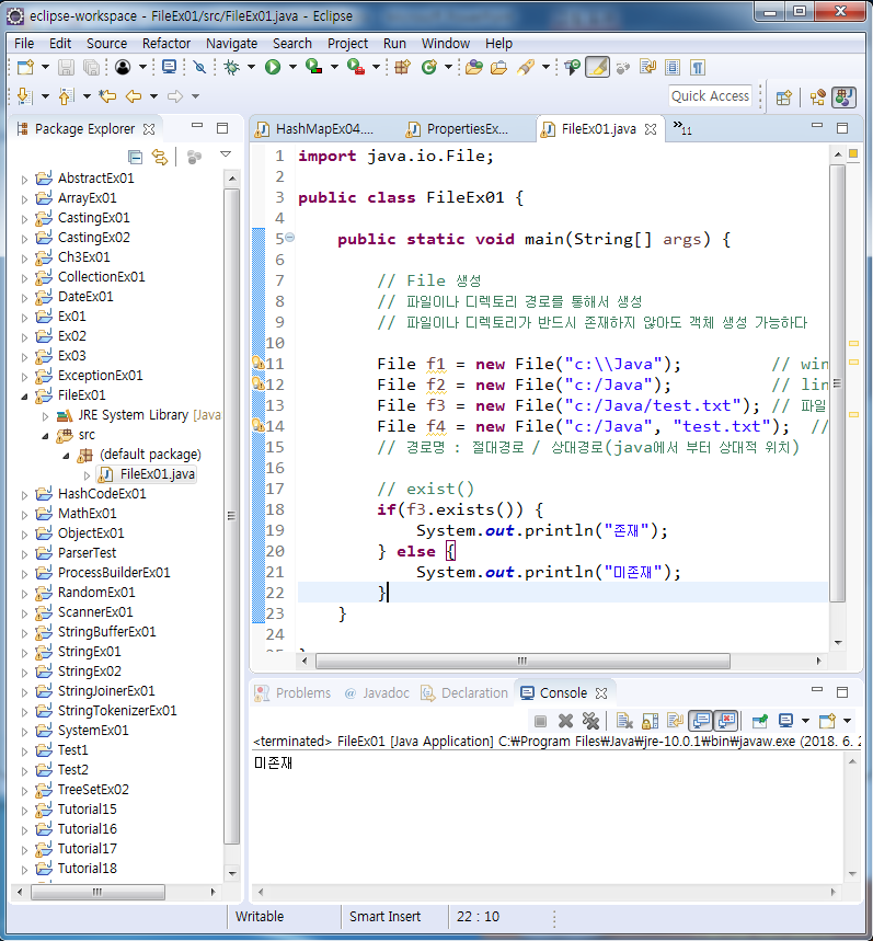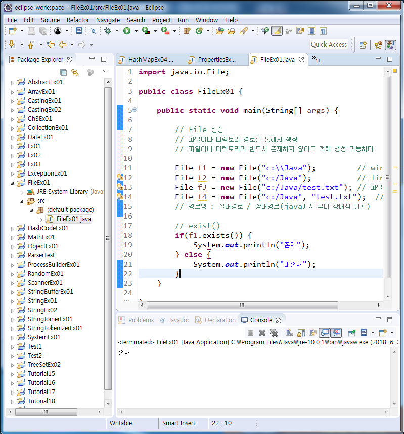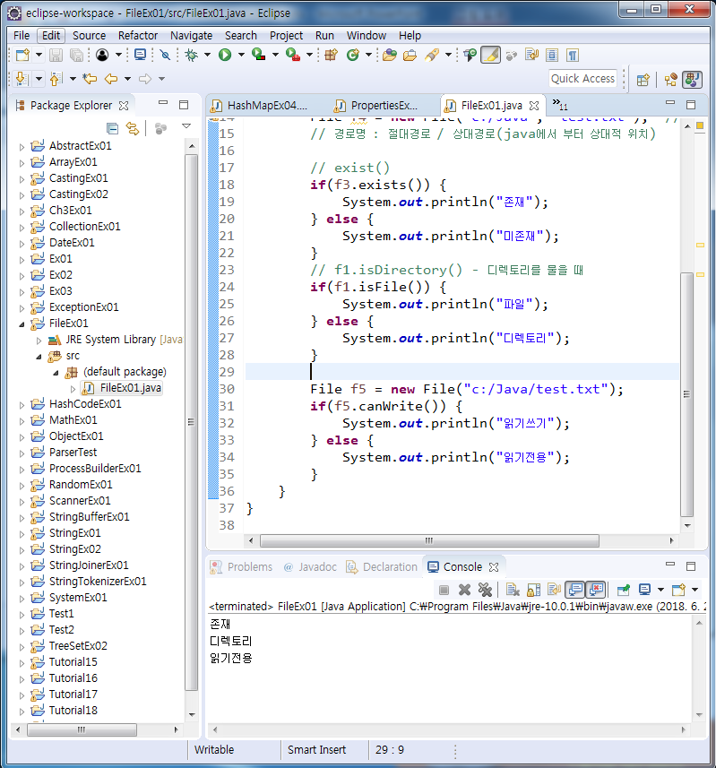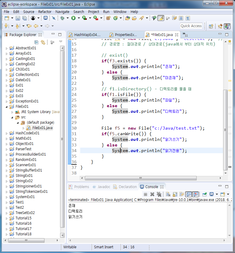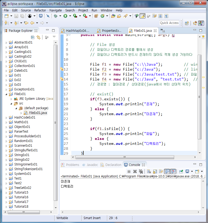 자바에서는 File클래스를 통해서 파일과 디렉토리를 다룰 수 있도록 하고 있다. 그래서 File인스턴스는 파일일 수도 있고 디렉토리일 수도 있다. 앞으로 File클래스의 생성자와 메서드를 관련된 것들 끼리 나누어서 예제와 함께 설명하고자 한다.