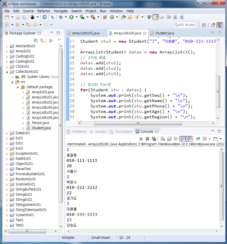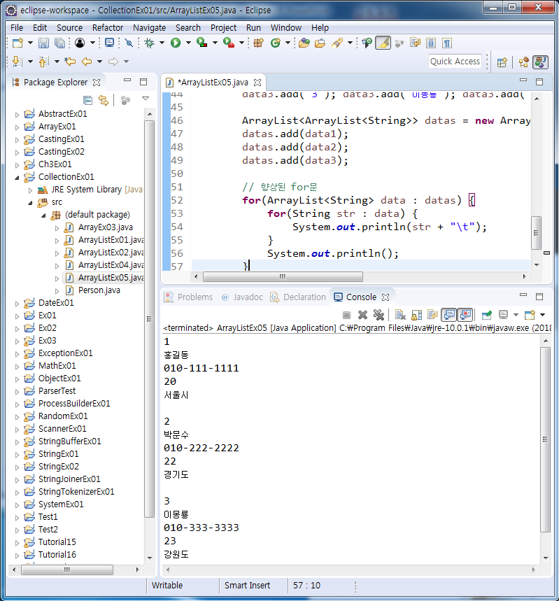 ArrayListEx06 - ArrayList + 클래스를 이용한 2차원 배열에 데이터 저장