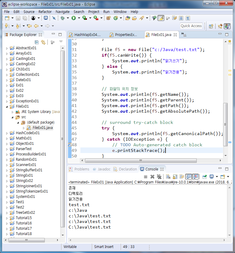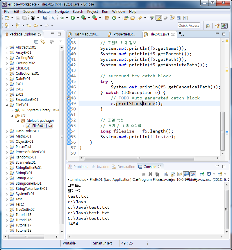 Unhandled exception type IOException 라는 오류구문이 생기면 IOException을 추가해 줘야 한다
